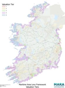 Levy Tiers have been categorised using Electoral Divisions (EDs) which are defined National Statutory Boundaries. There are approximately 750 EDs contiguous to the Maritime Area and each of these has been assigned to a specific Tier. The relevant Tiers are illustrated in the following map: